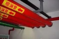 (1)消防供水管道的標志,在樓內的消防供水管,按規范要求全為紅色,并在管道上有明確的編號,說明該管是消火栓系統或花灑系統供水的區域范圍。