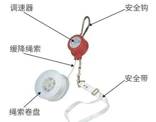 緩降器由掛鉤(或吊環(huán))、吊帶、繩索及速度控制等組成,是一種可使人沿(隨)繩(帶)緩慢下降的安全營救裝置。它可用專用安裝器具安裝在建筑物窗口、陽臺(tái)或樓房平頂?shù)忍帲部砂惭b在舉高消防車上,營救處于高層建筑物火場上的受難人員。緩降器適用于高層逃生。工作時(shí),通過緩降繩索帶動(dòng)主機(jī)內(nèi)的行星輪減速機(jī)構(gòu)運(yùn)轉(zhuǎn)與磨擦輪轂內(nèi)的磨擦塊產(chǎn)生磨擦作用,保證使用者安全緩降至地面。