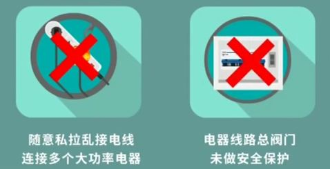 2、在家里隨意私拉亂接電線,并用于連接多個大功率電器;電器線路總閥門未做安全保護。