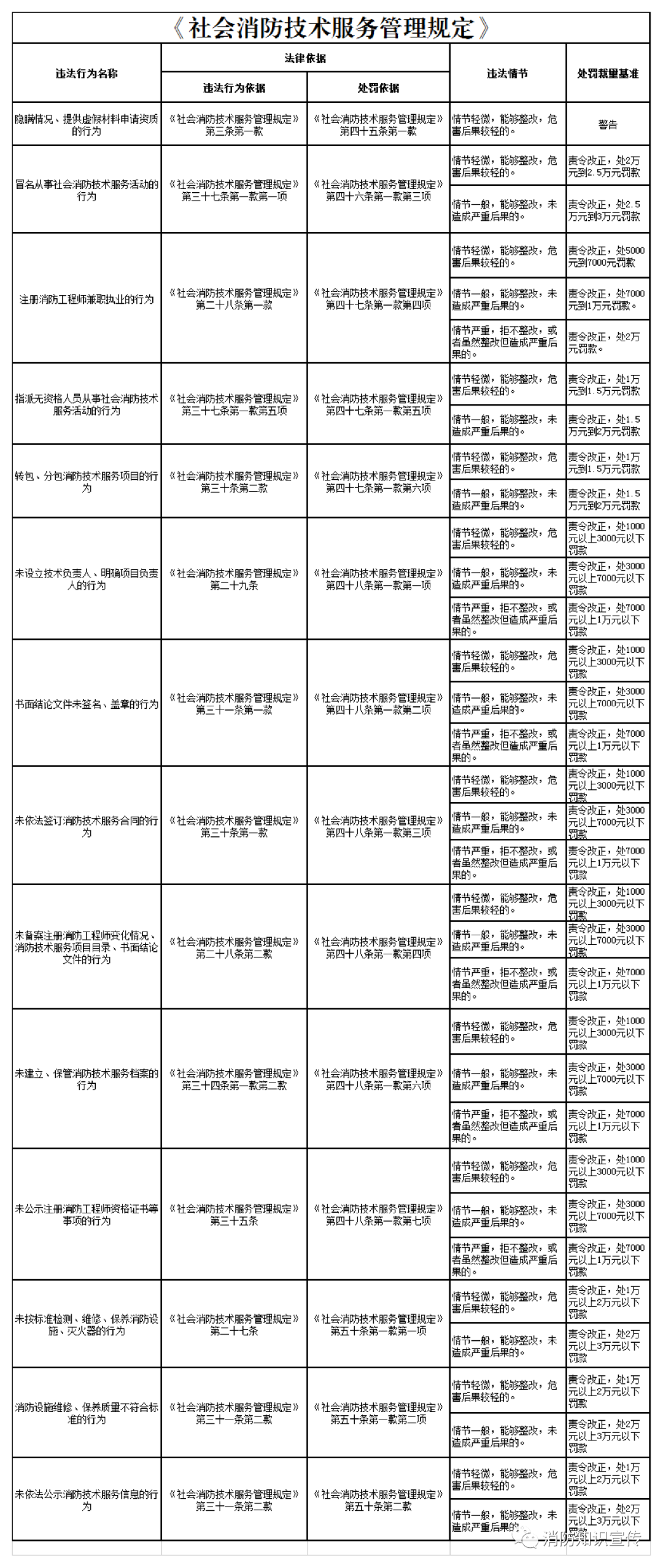 冒名從事社會消防技術服務活動的行為 | 《社會消防技術服務管理規定》第三十七條第一款第一項 | 《社會消防技術服務管理規定》第四十六條第一款第三項 | 情節輕微,能夠整改,危害后果較輕的。 | 責令改正,處2萬元到2.5萬元罰款 |