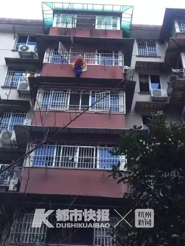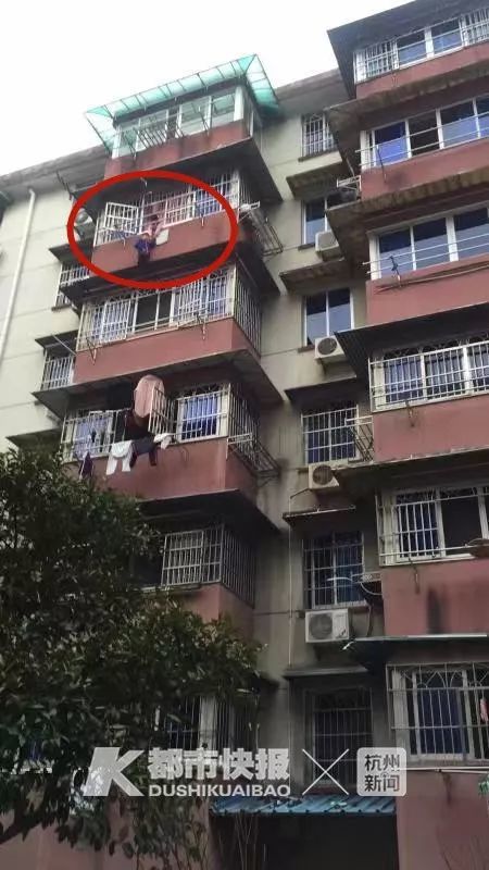 他說,“當(dāng)時我準(zhǔn)備出門去上班,時間大概是17時15分左右。走著走著,一抬頭,就看到對面居民樓的5樓的陽臺上,吊著兩個人。再仔細(xì)一看,嚇我一跳:天哪!是兩個小孩子啊。小男孩站在雨棚上,踮起腳。上面的小女孩,胸部以上身體探出陽臺,一邊大哭,一邊用雙手緊抓著小男孩的手。我真嚇壞了!就趕緊報警。”