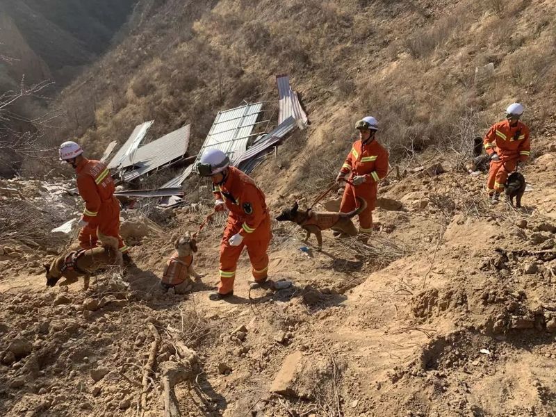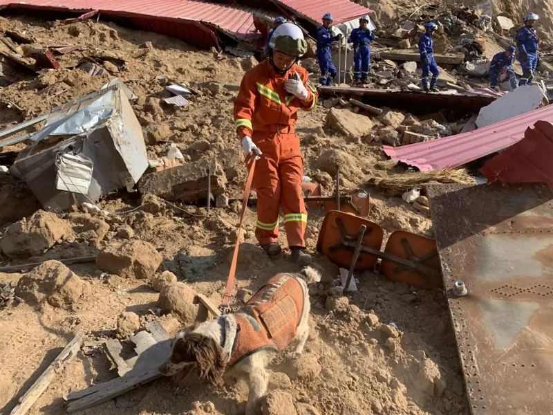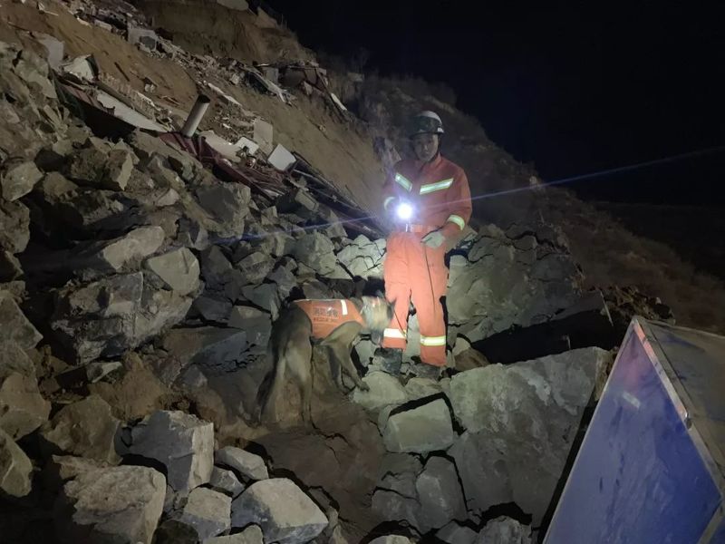 和英勇的指戰員并肩在一起作戰的還有搜救犬們。參加此次搜救的搜救犬全部技術過硬,經驗豐富,其中幾只犬參加過全國的比武競賽,有很強的實戰能力。