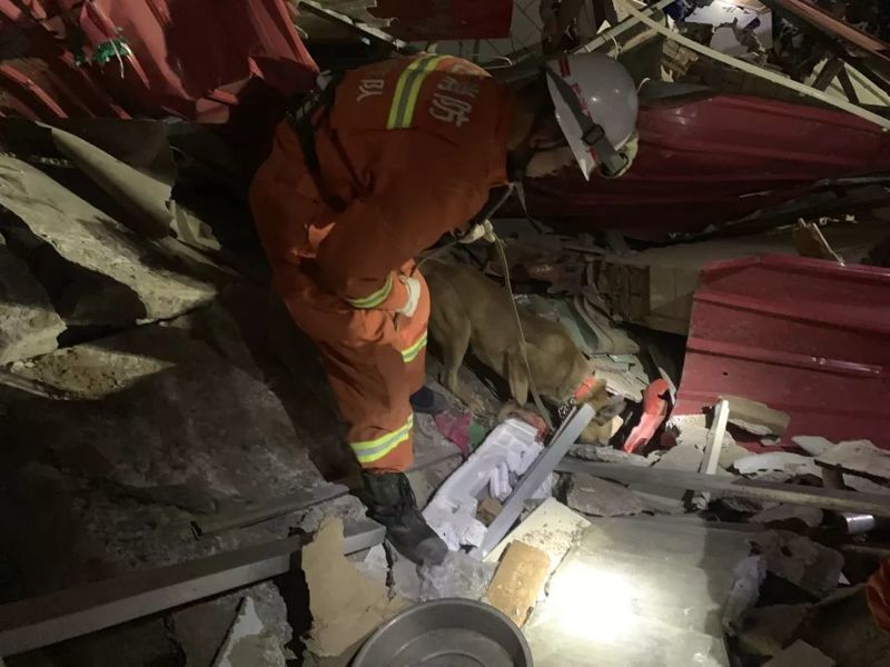 到達的當天凌晨,訓導員就帶領搜救犬先后三次入場參與了搜救,最后一次搜救完成已是17日凌晨2點半左右。雖然它們不會說話,但它們卻格外忠誠,只要訓導員的命令下達,它們定然奮不顧身。