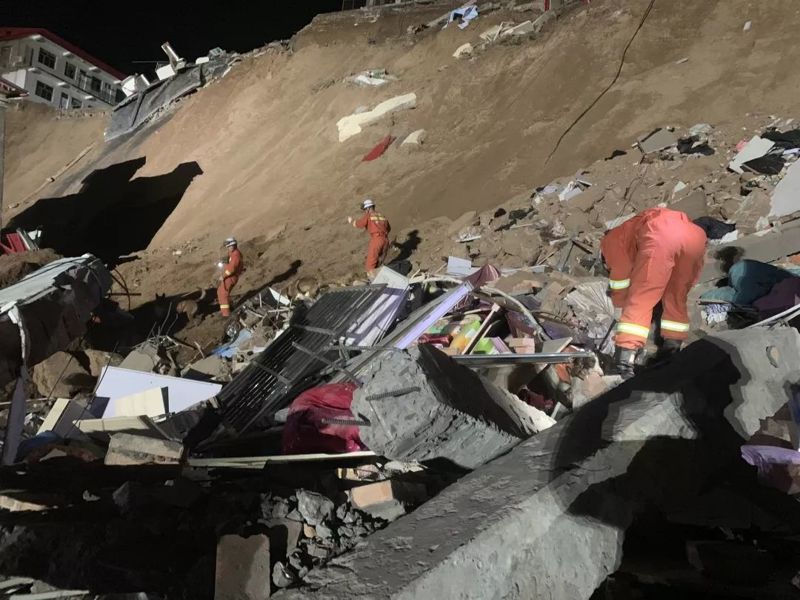 總隊參謀長管延忠介紹,山體滑坡后,現場呈現出兩個“作業區”。“作業區”即房屋垮塌之后形成的廢墟帶。這些廢墟帶之上是很不穩定的山體,隨時可能發生二次塌方;廢墟帶之下是山體垮塌形成的新的山坡,新的山坡傾斜角度將近30°,很難攀爬。對救援來說,一方面,“作業區”面積狹長,不能夠同時容納太多人,救援隊伍難以展開;另一方面,廢墟的結構極不穩定,滑坡體土質松軟,很多支撐環環相扣,牽一發就可能動全身,一不小心導致二次塌方便會給救援人員造成人身傷害。