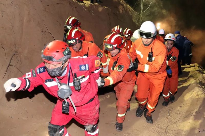 接到總隊命令后,支隊黨委立即調派介休中隊兩車十人趕赴鄉寧。同時,考慮到救援情況復雜,形勢比較嚴峻,向特勤中隊下達命令。命令特勤搶險攻堅組23人攜帶生命探測儀和、移動照明組、鑿巖機等器材裝備在最短時間內集結出發。