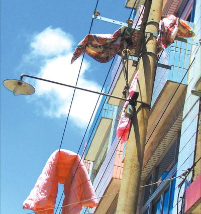 3樓的劉婆婆介紹,當時她和老伴在家,在晾衣架上放了三床洗過的被套床單。沒想到樓上的火星掉落下來,將被套引燃。她老伴去撲救,手掌還被燙出水泡,最后還是劉婆婆潑了一桶水,才將火澆滅。劉婆婆說,她也懷疑是樓上掉煙頭將管先生家的被物點燃,但不知道是誰干的。劉婆婆說,自己損失七八百元,如果找不到肇事者,她只好向管先生索賠。