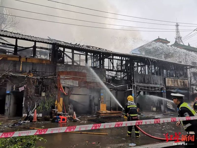 一排木質(zhì)老舊建筑被點(diǎn)燃