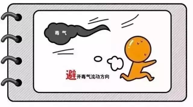 2、撤離時要弄清楚毒氣的流向,往上風向撤離,不可順著毒氣流動的方向走。