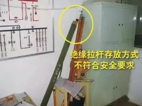排查依據:DB 11527-2008《變配電室安全管理規范》5.18.5 絕緣拉桿應懸掛或架在支架上,不應與墻接觸。