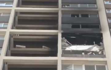 住戶家的房門被沖擊波震開,陽臺被炸毀,玻璃全碎,多名小區群眾被閃爆飛濺出來的碎片砸傷。