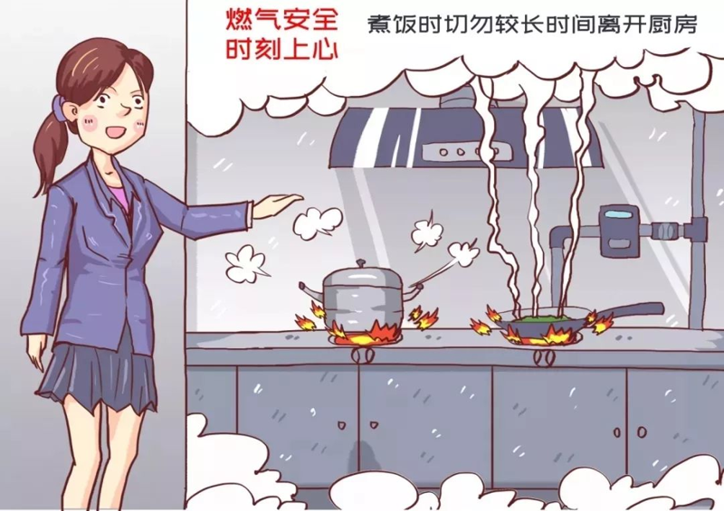 在廚房熬粥、燉湯、燒水時,不能長時間離開廚房,更不能離開家外出,因為四溢的湯汁可能會把火焰撲滅,造成燃氣泄漏,引發爆燃或者爆炸。
