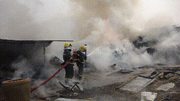 11時05分,現場明火被撲滅,為防止復燃情況發生,消防員利用開花水槍對現場進行再次冷卻。確認現場無復燃可能后,消防員收整器材安全歸隊。