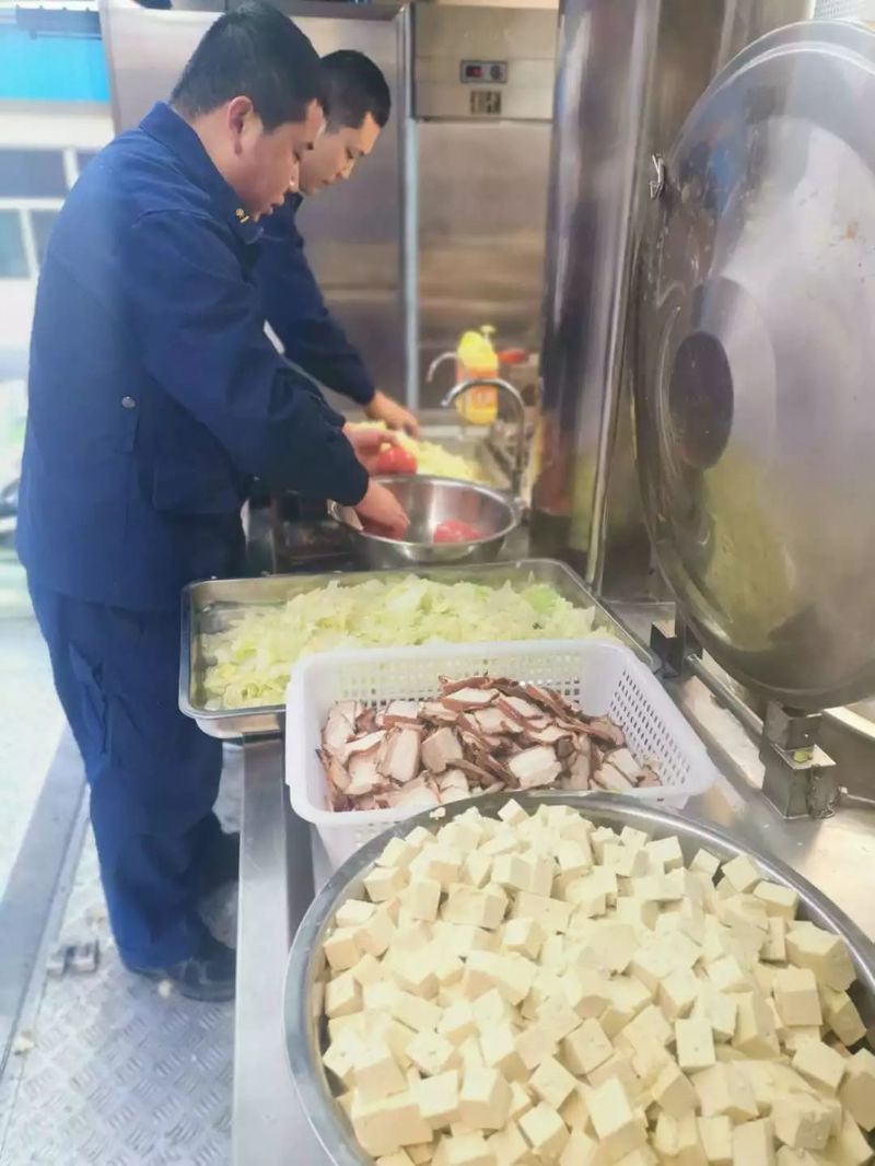 55人的飯菜、飲用水,同時(shí)要保障營養(yǎng)、口味、數(shù)量,從來到集結(jié)地點(diǎn)后,保障組的人一刻也沒有停歇。商議食譜、采購、洗摘、烹飪、清洗、消毒……凌晨的夜間補(bǔ)給,當(dāng)天的3頓正餐,即使晚飯過后,為了保障夜間行動(dòng)的指戰(zhàn)員能夠隨時(shí)補(bǔ)充能量,他們還需要待命準(zhǔn)備熱水熱飯。