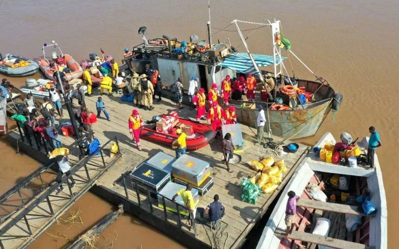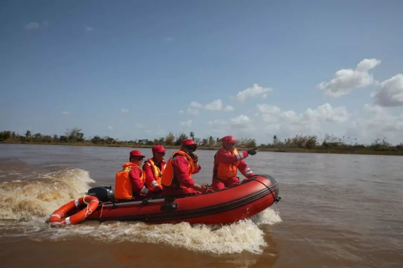 28日,中國(guó)救援隊(duì)副隊(duì)長(zhǎng)、北京市消防總隊(duì)參謀長(zhǎng)王仕國(guó)帶領(lǐng)17名消防救援人員和當(dāng)?shù)刂驹刚撸饨璁?dāng)?shù)?艘船只,攜帶5艘沖鋒舟,沿部滋河逆流而上,經(jīng)過(guò)4小時(shí)水上航行,抵達(dá)部滋地區(qū)碼頭并與當(dāng)?shù)匦姓L(zhǎng)官阿達(dá)姆會(huì)面。他向救援隊(duì)介紹了部滋地區(qū)整體情況。據(jù)了解,部滋地區(qū)受災(zāi)人數(shù)眾多,醫(yī)院無(wú)法正常運(yùn)轉(zhuǎn),物資緊缺,深入內(nèi)河航道仍有班多(15公里)、瓜拉瓜拉(17公里)、右錄機(jī)(72公里)等3個(gè)村落情況不明。