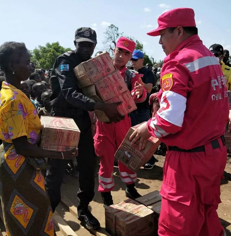 救援隊(duì)向當(dāng)?shù)卣栀?zèng)物資
