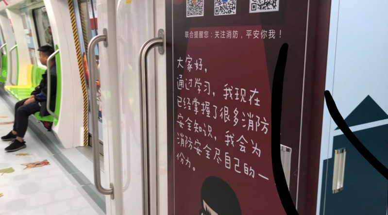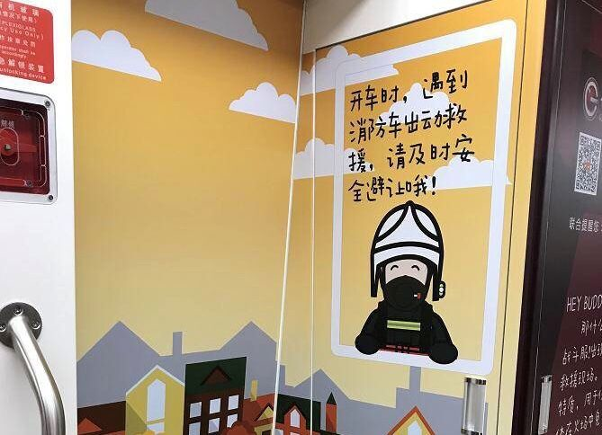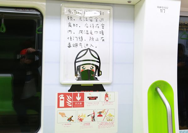 乘客劉女士告訴記者,她抱著孩子一上車就被車廂內(nèi)的卡通消防形象吸引住了,覺得很新奇也很有意義:“就發(fā)現(xiàn)這個地鐵內(nèi)地上周圍都貼了很多關(guān)于消防的東西, 我覺得挺好的,這樣可以讓更多乘坐列車的人都可以了解,希望更多人關(guān)注消防。”