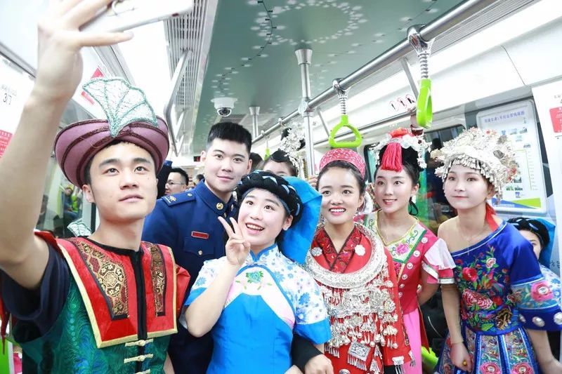 4月3日,貴陽市“共筑平安號”地鐵消防專列在貴陽軌道交通1號線下麥西站發(fā)車。在現(xiàn)場,乘客、高校的學(xué)生與貴陽消防指戰(zhàn)員共同開展了一場“為祖國母親點(diǎn)贊,向消防員致敬”的快閃活動。