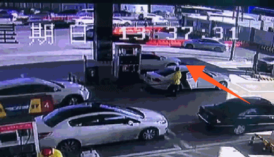 在陜西西安某中國石油加油站,一輛正在加油的白色轎車突然啟動向前行駛,強(qiáng)大的拉力將加油機(jī)拽倒!加油機(jī)底部樁基產(chǎn)生的火花瞬間引燃汽油,火焰竄出2米多高!