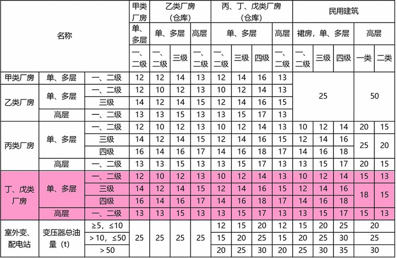 民用建筑中使用的單臺蒸發量在4t/h以下或額定功率小于或等于2.8MW的燃煤鍋爐房,由于火災危險性較小,將這樣的鍋爐房視為民用建筑確定相應的防火間距。大于上述規模時,與工業用鍋爐基本相當,要求將鍋爐房按照廠房的有關防火間距執行。至于燃油、燃氣鍋爐房,因火災危險性較燃煤鍋爐房大,還涉及到燃料儲罐等問題,故也要提高要求,將其視為廠房來確定有關防火間距。