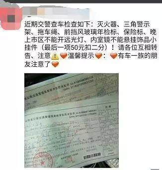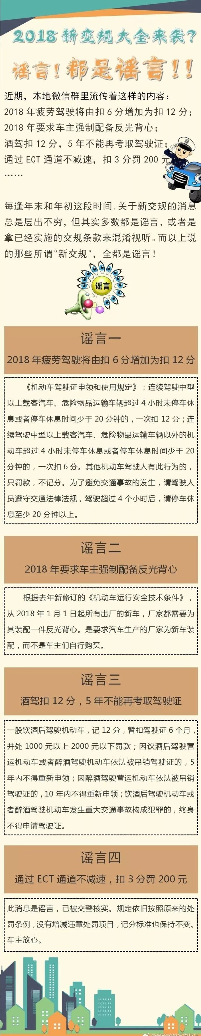 圖片內(nèi)容載明“2018年新交規(guī)……”,特別還圈出了“車上沒有滅火器、三腳架、反光背心記12分,罰款200元”,好像權(quán)威說法的樣子。不過交警蜀黍出來辟謠了,這又是一個“新交通法規(guī)”的假消息!