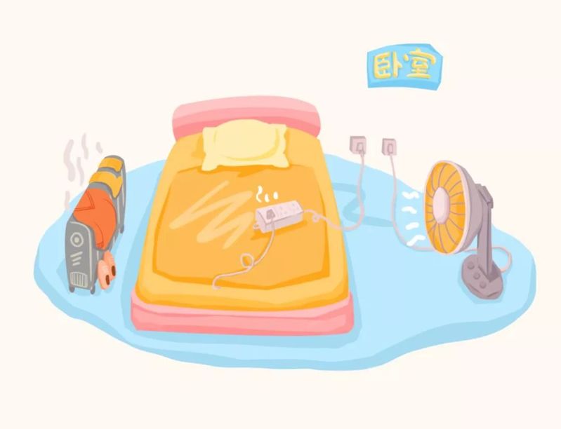 2. 電熱毯等電器不可在無人使用時處于通電狀態,當期溫度升高至一定程度時,也會引燃周圍物品。