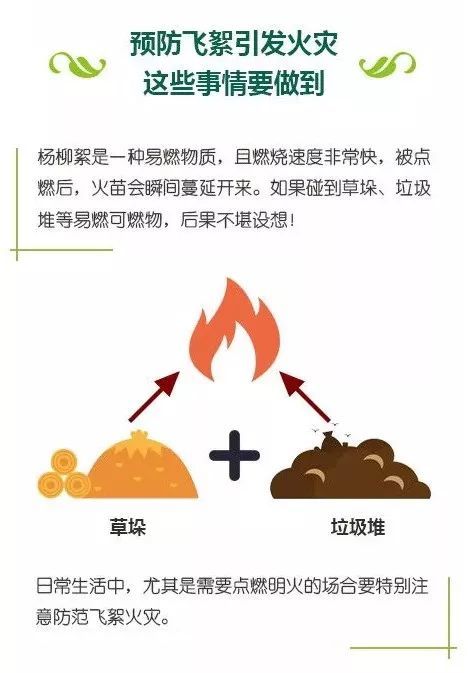 楊柳絮是楊樹、柳樹的種子,含有大量油脂,由于它質地輕盈,只需微風便能順勢飄起,且一旦點燃,極有可能因蔓延迅速而殃及周遭,導致更大的火災事故發生。
