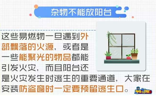所以家中的陽臺(tái),小區(qū)的樓道、管道井等處不要堆放雜物,應(yīng)及時(shí)清理家中的多余物品,特別是易燃可燃物,分門別類的扔到指定地點(diǎn),這樣才能徹底清除火患。