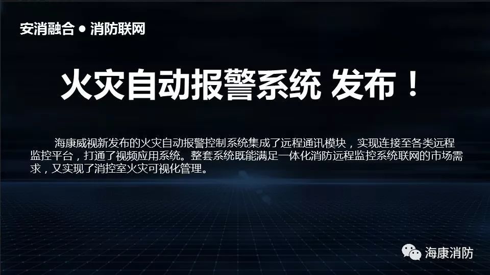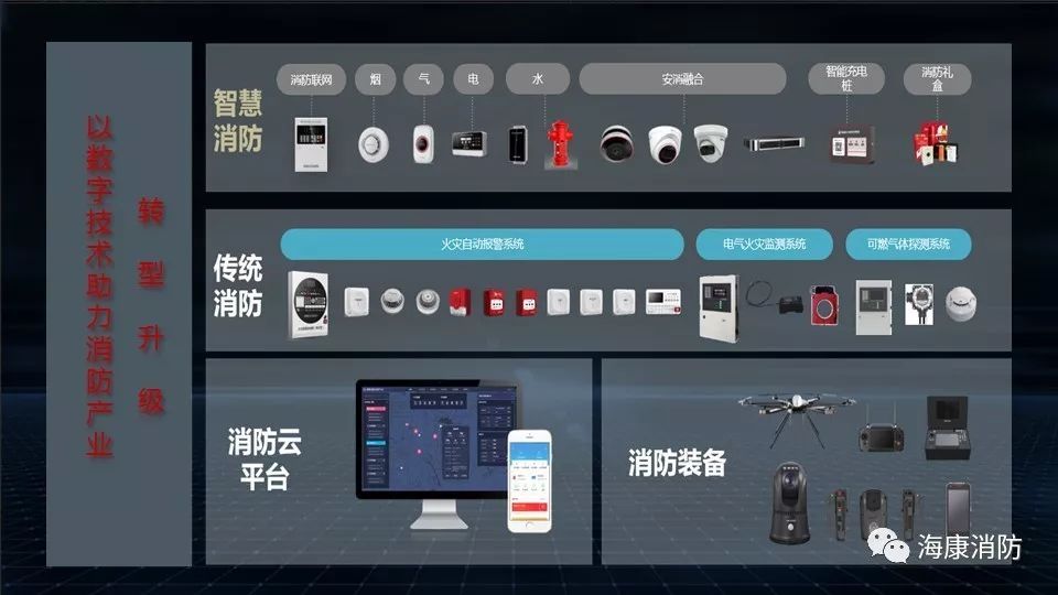 ??低晣@消防物聯(lián)網(wǎng)以“預(yù)防為主,防消結(jié)合“為理念,研發(fā)了與消防相關(guān)的水、電、煙、氣、網(wǎng)關(guān)、用戶信息傳輸裝置等物聯(lián)網(wǎng)類產(chǎn)品,打通視頻監(jiān)控系統(tǒng),開發(fā)安防與消防統(tǒng)一管理的平臺(tái),整合了建筑、地理等基礎(chǔ)數(shù)據(jù),構(gòu)建全域覆蓋、全時(shí)可用、全局可視的火災(zāi)防控體系,全面提升社會(huì)火災(zāi)防控水平。