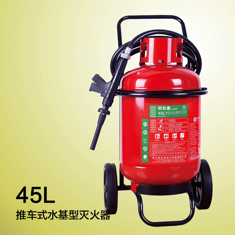 推車式45L水基型滅火器產(chǎn)品使用每滿三年,應(yīng)更換一次藥劑滅火器主要用途主要適合配置在具有可燃固體物質(zhì)火險(xiǎn)(A類火)場(chǎng)所, 如商場(chǎng)、飯店、寫(xiě)字樓、賓館、學(xué)校、旅游、娛樂(lè)場(chǎng)所,以及 紡織、橡膠、塑料、紙制品、煤礦等場(chǎng)所; 也適合配置在車、船、機(jī)場(chǎng)、車站、碼頭、加油站等一切具有 可燃液體火險(xiǎn)(B類火)場(chǎng)所; 還可以配置在36kV以下的室內(nèi)外變壓器、油浸開(kāi)關(guān)、變電站等 涉及到電器設(shè)備火險(xiǎn)(E類火)場(chǎng)所。